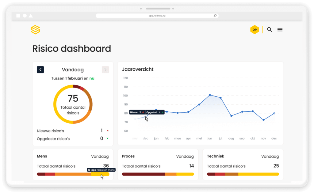 Holmes combineert bewustwording, training en toetsing in één gebruiksvriendelijke en overzichtelijke digitale oplossing.